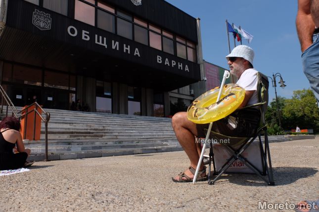 Варненци опънаха хавлии и чадъри пред Община Варна (снимки)
