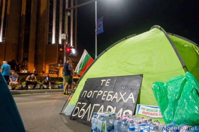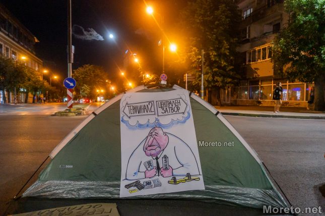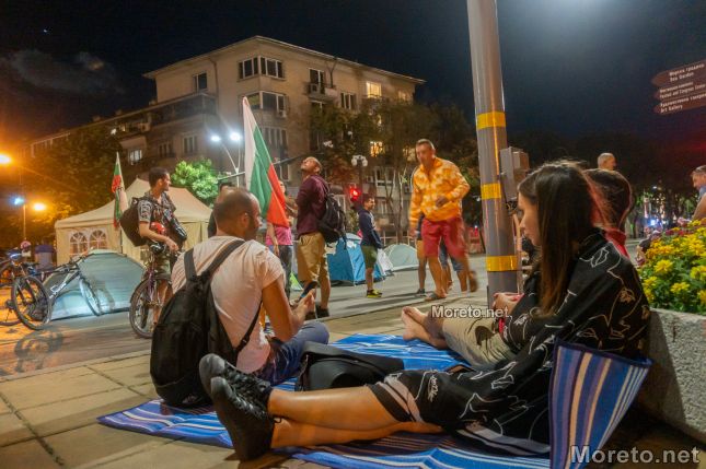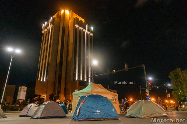 Палатковият лагер, който бе опънат днес малко преди 19 часа от протестиращи. По всичко изглежда, че ще остане там и цяла нощ.