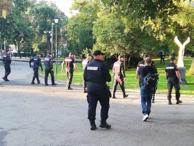 По-рано тази сутрин бяха направени огледи и проверки в периметъра на зоните за сигурност в "триъгълника на властта" с цел отстраняване на опасни предмети и вещи. Открити бяха метални тръби, чували с камъни и стъклени бутилки, дървени пръти, 2 ножа, бойна прашка, 5-литрова туба с неустановена течност с остра миризма. При обход на района беше намерена и чанта, пълна с бутилки с течности с различен цвят и остра миризма.