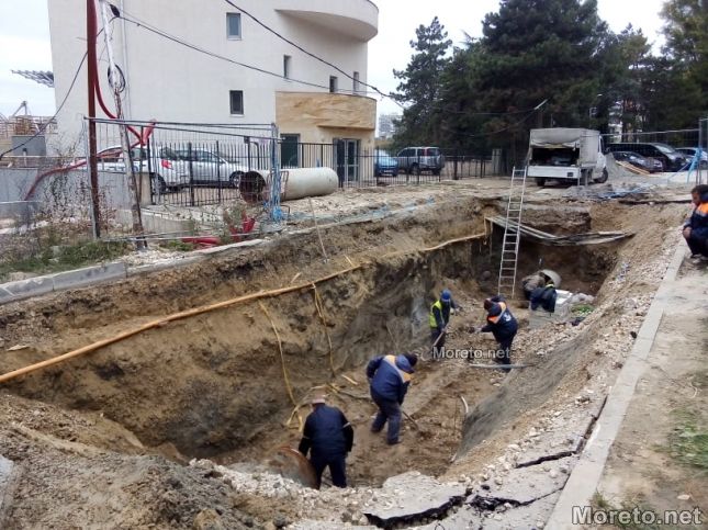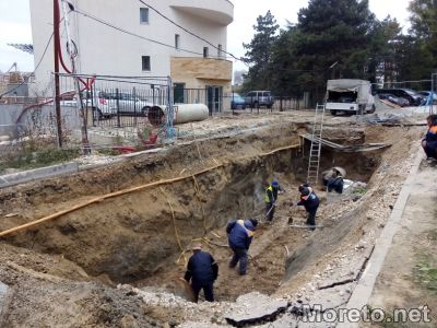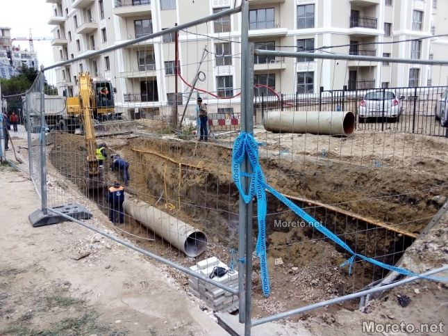 Екипи на ВиК - Варна работят по отстраняването на аварията по магистралния водопровод до стадион "Варна", вследствие на която в четвъртък бе наводнен подлезът на "Почивка", а в района се образуваха задръствания. Малко преди 14.00 ч. бе отстранена компрометираната част от водопровода, която е стъклопласт, предаде репортер на Moreto.net
