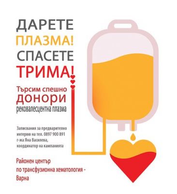 Желаещите да дарят плазма трябва да имат положителен PCR тест или епикриза от болнично лечение. Трябва да са минали не по-малко от 40 дни след положителния резултат от PCR теста. С плазмата, дарена от един човек, може да спаси живота на трима болни от COVID-19!
