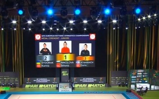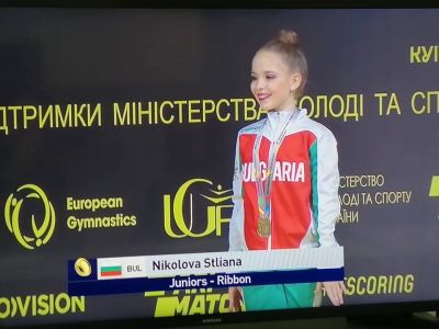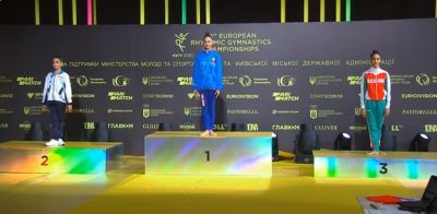 Изключителен ден за художествената ни гимнастика. България спечели пълен комплект медали - златен, сребърен и бронзов, на финалите на отделните уреди при девойките на Европейското първенство по художествена гимнастика в Киев (Украйна).