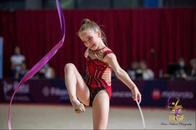 Стиляна Николова завоюва златно отличие на лента, след като изигра страхотно съчетание и получи оценка 21.550 точки. Тя стана и втора на финала на топка с 22.700 точки, съобщават от Българската федерация по художествена гимнастика.