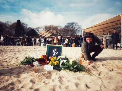 Събитието се състоя тази сутрин на плажа пред Menthol - емблематично за групата място, в часа на поклонението пред музикантa в София.
