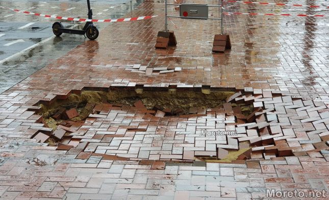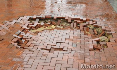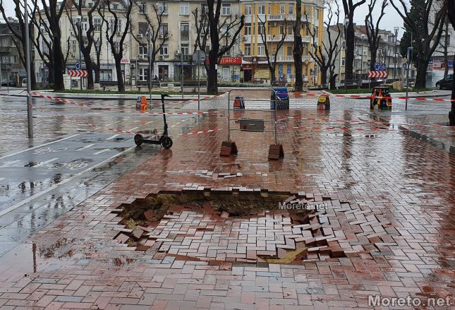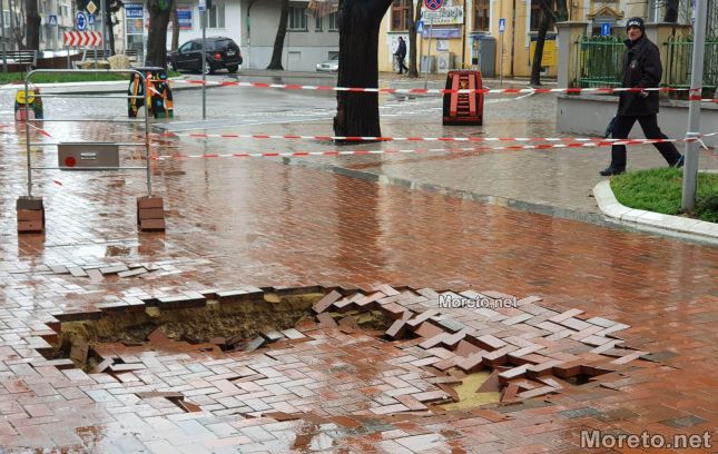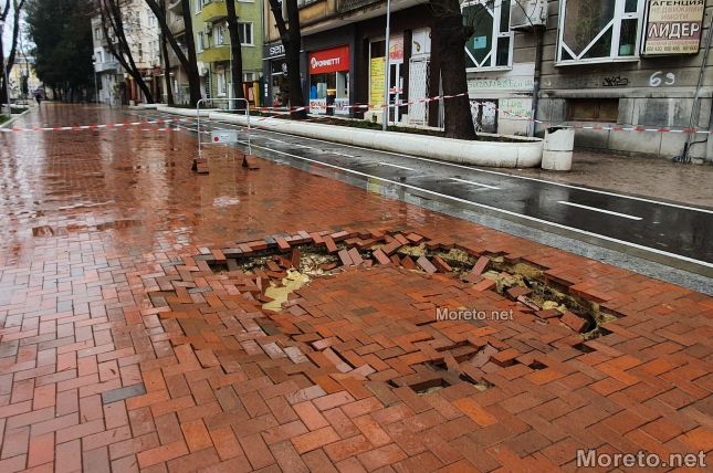 Пропаднала е част от пешеходната зона на ул. "Михаил Колони" в центъра на Варна, видя репортер на Moreto.net. Свличането е точно до СУ "Св. Климент Охридски", а по думите на живущ в района отдолу минава канализация.