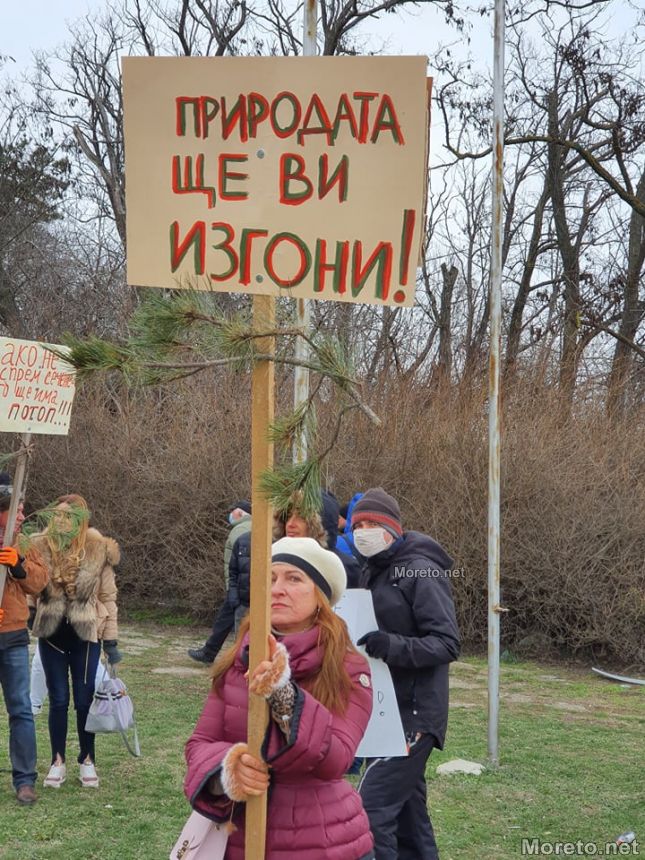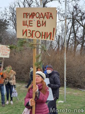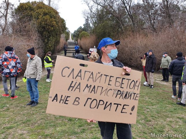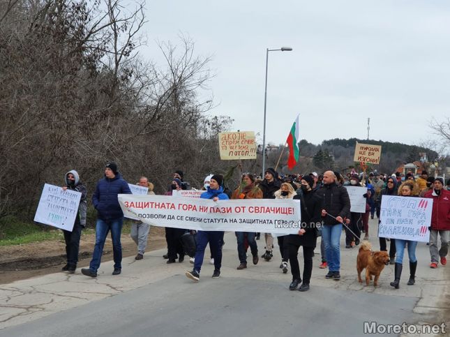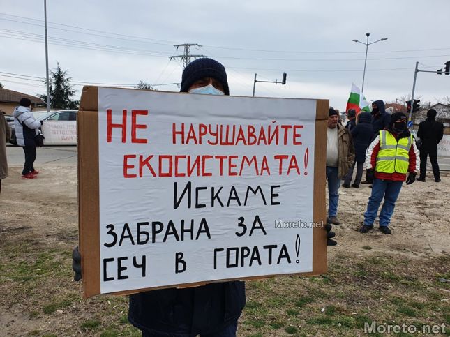 "Някой по незнаен път е внесъл, че тази гора не е защитна, а гора за дърводобив. На по-късен горските стопани пишат до министъра на земеделието, че предназначението ѝ спокойно може да бъде сменено в устройствена зона за застрояване", казаха още на протеста.