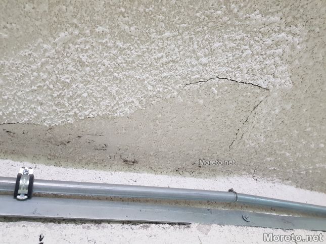 Мазилката от тавана е паднала на още места, видимо той е подпухнал и напукан в по-голям обем.