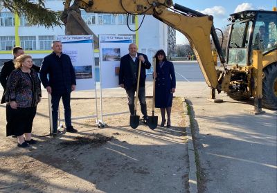 Символична първа копка бе направена вчера от кмета на Варна Иван Портних, министъра на младежта и спорта Красен Кралев и директора на училището Мария Нестерова.