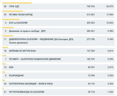 Ето и списък на всички формации, събиращи над 1% от вота на избирателите.