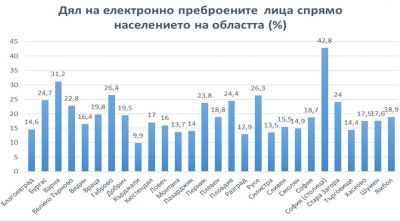 Първите три места по най-голям дял от населението, което се е преброило онлайн, продължават да държат София (42.8%), Варна (31.2%) и Габрово (26.4%). Веднага след Габрово само с 0.1 на сто разлика се нарежда Русе.
