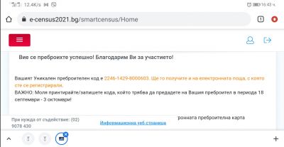 Всеки, който успешно е попълнил преброителната карта онлайн, е получил на имейла си уникален преброителен код.