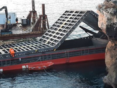 За днес е предвидено да бъдат прехвърлени последните 700 кубика от азотиня тор. Самото изтегляне се предвижда за утре, но има вероятност днес, когато бъде изцяло разтоварен, корабът да олекне и сам да се слезе от скалата.
