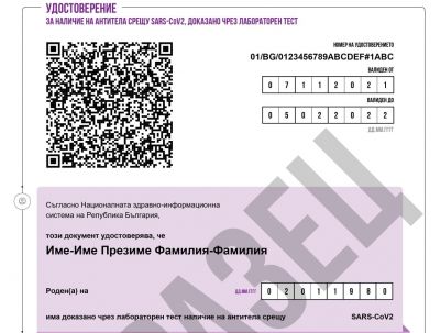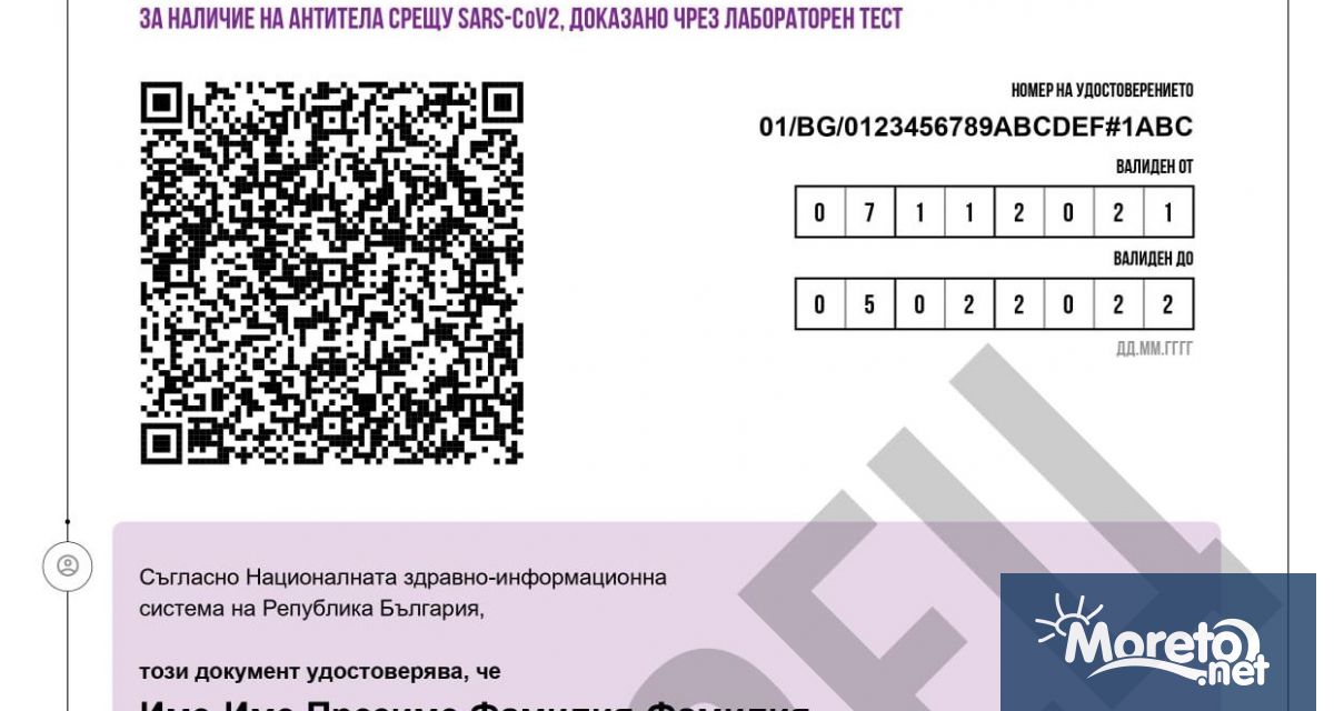 Документът е със срок на валидност 90 дни и може да се използва като "зелен сертификат" само на територията на България.