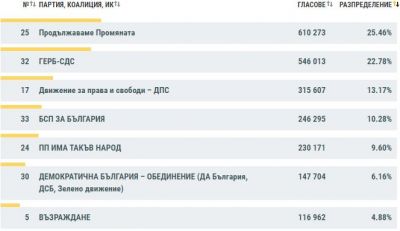 Това сочат данните на ЦИК към 16.30 ч. при обработени 93.28% от протоколите.
