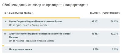 Румен Георгиев Радев и Илияна Малинова Йотова - 93 101 гласа