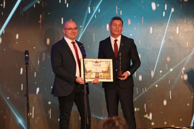 Силвия Георгиева, изпълнителен директор на „Националното сдружение на общините“ в Република България и Димитрина Горанова, председател на Управителния съвет на „Асоциацията на българските туроператори и туристически агенти“, връчиха статуетката на фаворита в друга много атрактивна категория – „Туристическа община 2021-ва“, която отново отиде при община Шумен.