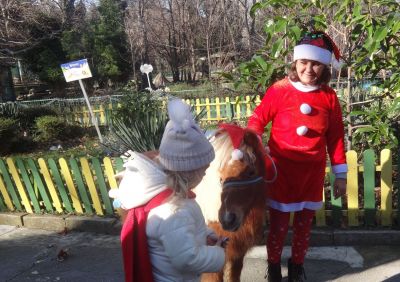 Дядо Коледа и помощниците му - понито Виолет и джуджето Биби, зарадваха с лакомства и играчки животните в зоопарка във Варна, научи Moreto.net.