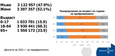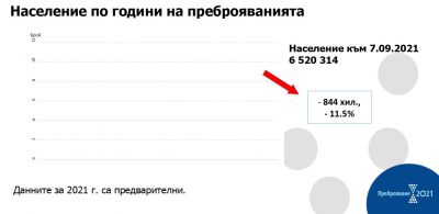 Предварителната оценка за броя на населението не трябва да се счита за окончателни данни от Преброяване 2021.