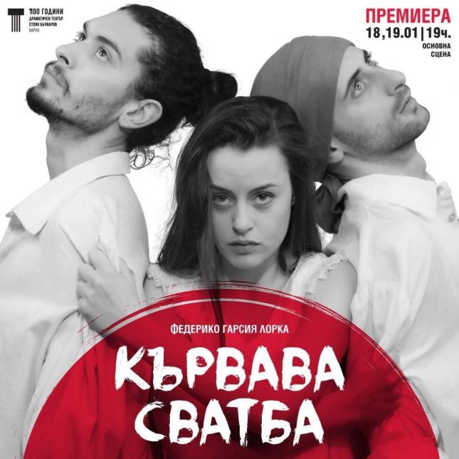 Постановката „КЪРВАВА СВАТБА“ от най-значимия испански поет и драматург на XX век Федерико Гарсия Лорка ще се играе днес и утре (18, 19 януари 2022) от 19 часа на сцената на Драматичен театър „Стоян Бъчваров“, припомня Moreto.net
