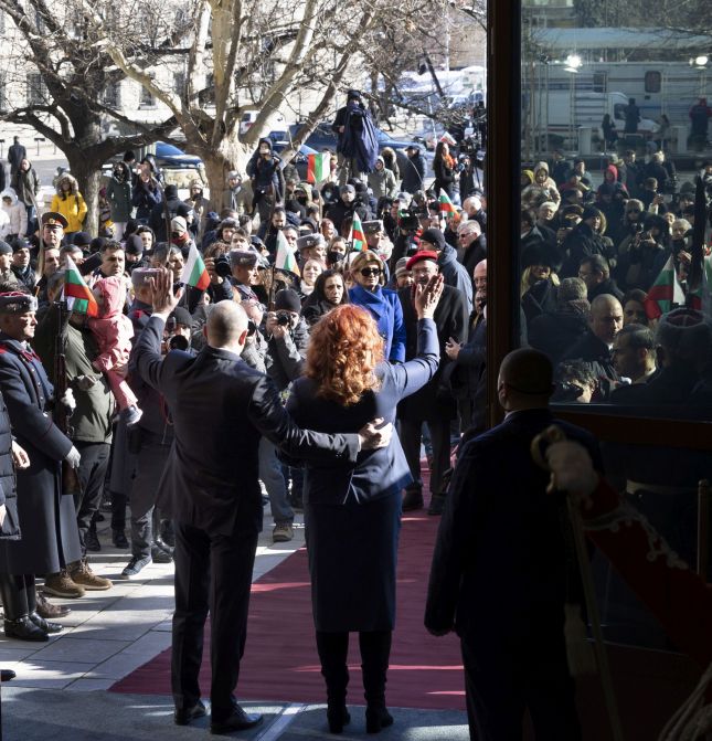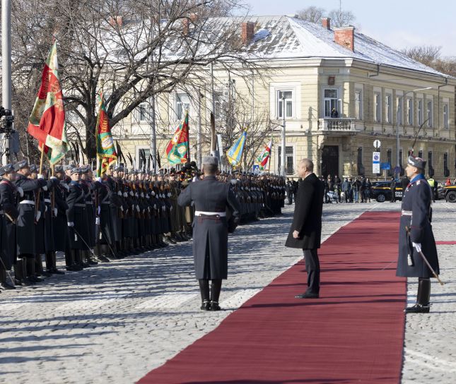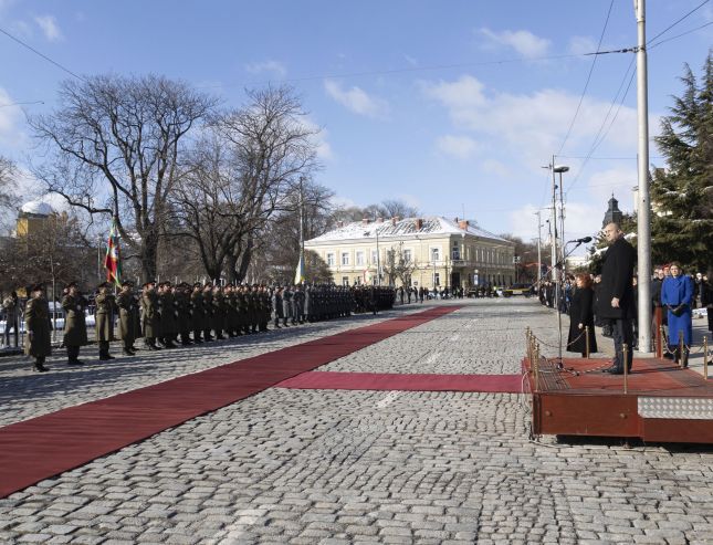 Преди пет години за първи път приех строя на гвардията тук, пред катедралния храм и вечния огън. Помня лицата на много от вас, очите на хората, които бяха дошли в мразовития януари, за да подкрепят първите стъпки на надеждата за Нова България. Надеждата ни бе обща и вие я възложихте на нас с г-жа Йотова.