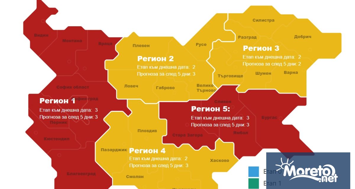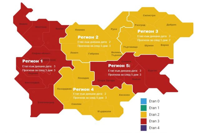 До вчера североизточният клъстер, обхващащ областите Варна, Добрич, Силистра, Шумен, Разград и Търговище, бе единствен в страната, който бе в зелена зона или между 50 и 60% заетост на интензивните легла за лечение на тежко болни пациенти с Covid-19.