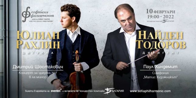 Разтърсващият Концерт за цигулка №1 от Дмитрий Шостакович ще звучи в изпълнение на Юлиан Рахлин и Софийската филхармония на 10 февруари. Това е едно от най-виртуозните произведения за цигулка. Трудната солова партия изисква висше техническо и артистично майсторство от изпълнителите, както и колосална енергия и издръжливост. Несъмнено Рахлин притежава всичко това, защото Концертът отдавна се е превърнал в негова визитка като цигулар. Диригент на вечерта е маестро Найден Тодоров, който допълва програмата с най-известната симфония на немския композитор Паул Хиндемит "Матис - художникът".