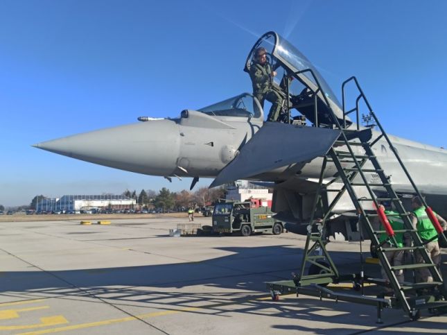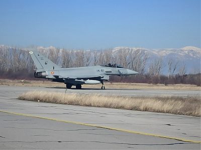 Четири самолета Eurofighter EF-2000 Typhoon II и 130 испански военнослужещи се предислоцираха в нашата страна от петък. Те пристигнаха във връзка с предстоящото изпълнение на мисия по съвместна охрана на въздушното ни пространство с ВВС на Република България.