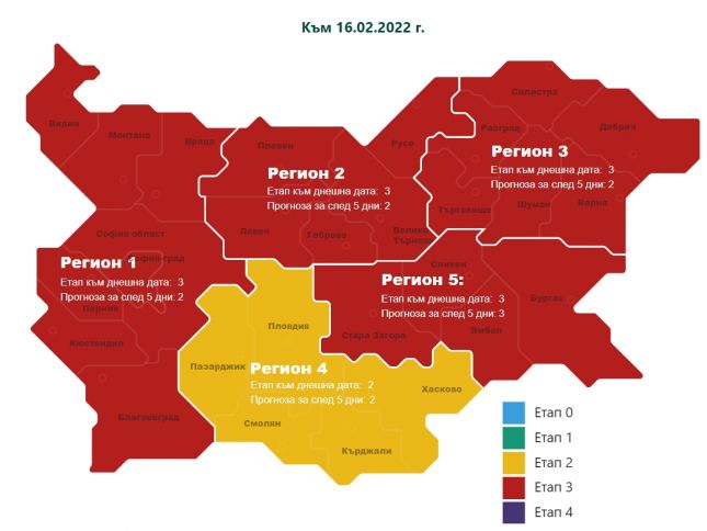 Прогнозата обаче за след 5 дни, т.е. за началото на следващата седмица е, че област Варна ще е в "Етап 2", или оранжева зона.
