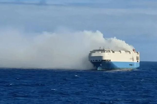 BREAKING: A giant cargo ship "Felicity Ace" is on fire in the middle of the Atlantic Ocean.