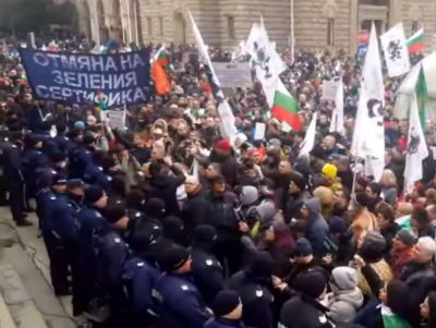 Той припомни, че управляващите планират пълно отпадане на зеления сертификат у нас, но демонстрантите започнаха да скандират "Още днес!". Петков продължи: "Това, което искам да ви кажа е, че нашето правителство не го е страх да говори с народа".