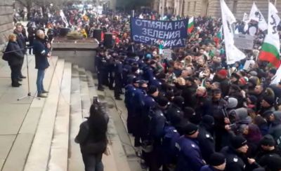 Протест се провежда под прозорците на властта в центъра на София. Демонстрацията е организирана от ПП „Възраждане“ и е срещу зеления сертификат.