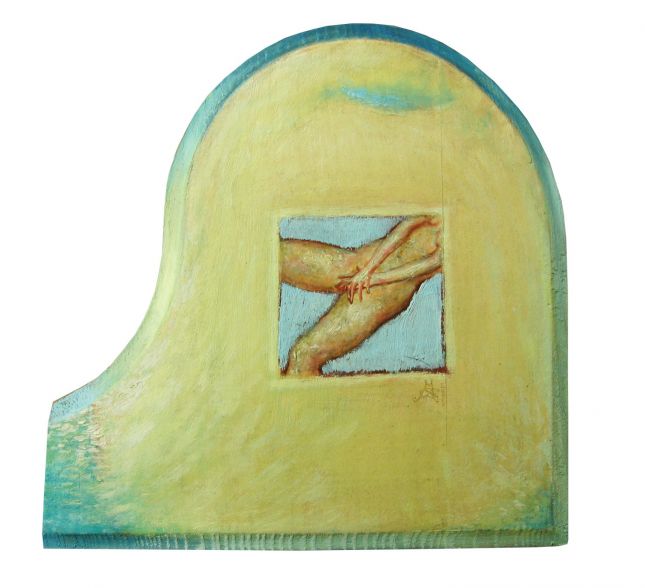 Интересното е, че произведенията в тази изложба не са правени в един период, но ги обединява първо, темата, второ, техниката, макар че съм включила най-различни жанрове - и по-кавалетни работи, и по-едри формати, платна, рисунки с акварел и др. Има и неща, които са създадени доста назад в годините, но никога не са показвани пред публика. Връзката между всички тях са текстовете, които привнасят едно допълнително усещане - те са като код за разбиране на моя образен свят. Писането и рисуването при мен се случват паралелно, но без да обвързвам точно една живописна творба с конкретен текст. По някакъв символен начин слово и образ си кореспондират.