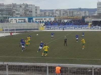 Първият гол падна в 38-та минута, дело на Лъчезар Йорданов, който нямаше проблеми пред вратата на Християн Славов и вкара за 0:1.