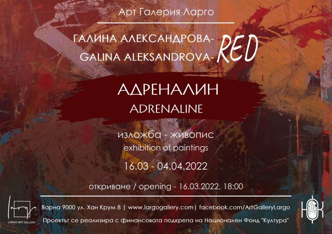 Изложбата се нарича „Адреналин“ и се реализира с финансовата подкрепа на Национален фонд "Култура".