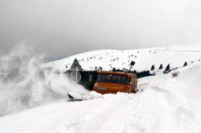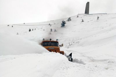 На места преспите достигат до 2-3 метра. 9 снегопочистващи машини - роторни и комбинирани снегорини, багери и друга специализирана техника, разчистват снегонавяванията в най-високия старопланински проход.