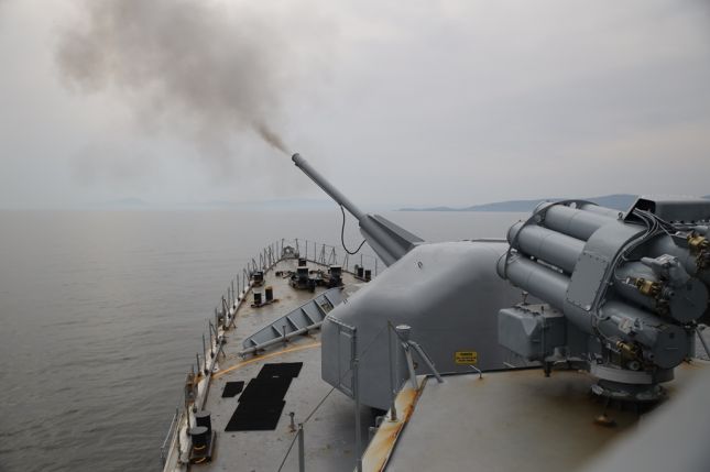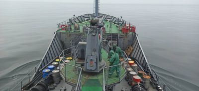 Фрегата „Дръзки“ от състава на дивизион патрулни кораби плава за провеждане на тактическо учение на единичния кораб.
