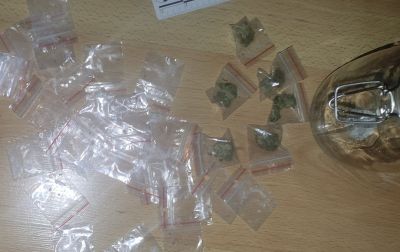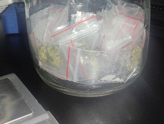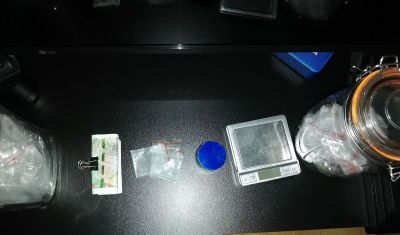 Последвало претърсване на дома на нарушителя, където оперативните открили приготвени за продажба 36 бр. пакетчета с кристали, 9 бр. опаковки с марихуана, 2 бр. електронни везни, значителна сума пари и незаконно притежавано оръжие, както и боеприпаси. Експресно направената справка в полицейската лаборатория е показала, че зелената листна маса реагира на марихуана, а кристалите са метамфетамин и екстази.