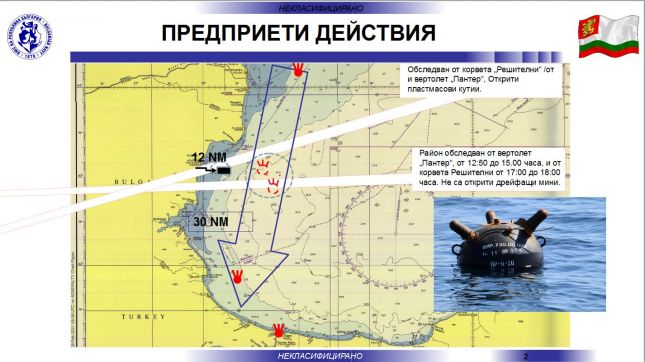 "Потвърдиха се предположенията ни, че ако има плаващи мини, те ще следват повърхностните течения в западната част на Черно море", допълни той.