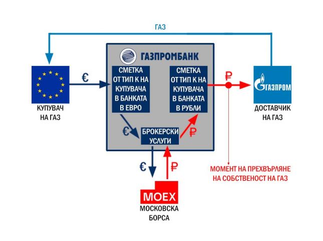 Посолството на Руската федерация у нас публикува във фейсбук схема с новия ред на плащания за доставките на руски газ.