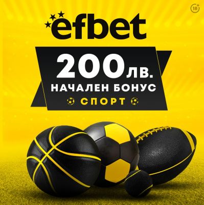 Българският букмейкър продължава да предлага на всеки нов клиент на компанията отлична стартова оферта. Начален бонус спорт 100% до 200 лева в efbet е сред най-често използваните оферти на компанията – всеки нов потребител получава като бонус между 0 и 200 лева според сумата, която е депозирал. Максималната сума на бонуса е до 200 лева (тоест, при депозит от 300 лева, максималната стойност на допълнителните средства остава 200 лева).