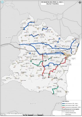 Сред текущите ремонти, които се предвижда да завършат през 2022 г., са участъци от първокласната пътна мрежа Зайчино ореше - Варна /52 км/, Кранево - Златни пясъци /4 км/, Кюстендил - Перник /12 км/, Костенец - Пазарджик /40 км/, София - Ботевград /6 км/. Предстои да завърши ремонтът на второкласните отсечки Вардим - Свищов /17 км/, Видин - Кула /27 км/, Генерал Тошево-Кардам - граница Румъния /7,7 км/, Разград - Просторно /18 км/, Нови пазар - Изворник /25 км/, както и на участъци от третокласната пътна мрежа.
