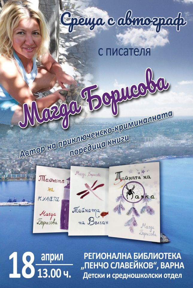 На 18 април от 13.00 часа в Детски и средношколски отдел на бул. "8-ми Приморски полк" №110 ще се срещнем с Магда
