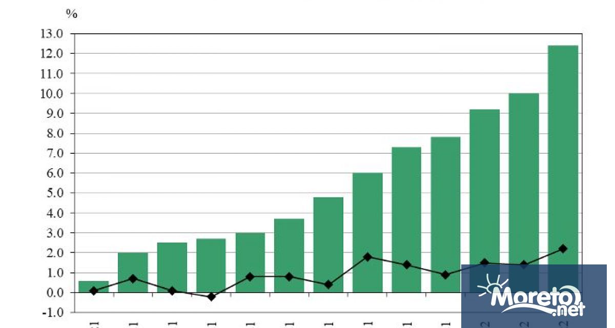 · ресторанти и хотели - увеличение с 2.2%;