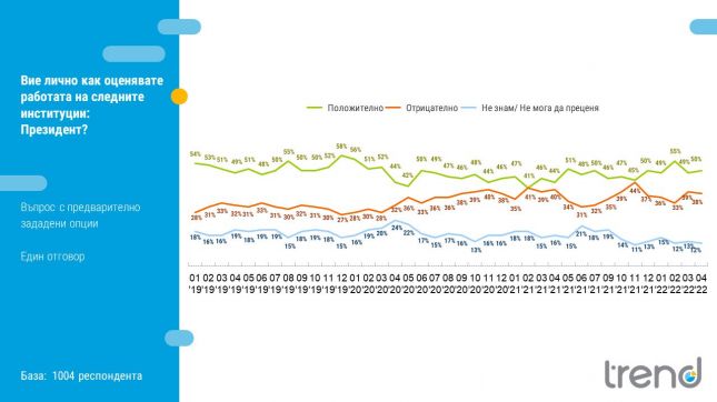 При президента не се наблюдава съществена промяна този месец, като положителните оценки за неговата работа са 50%, а отрицателни 38%.