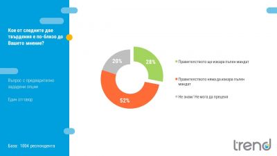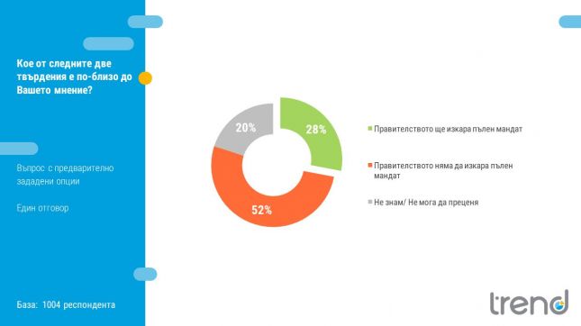 Малко над половината (52%) смятат, че правителството няма да изкара пълен мандат. 28% са на противоположното мнение.