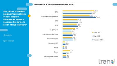 "Тренд": Ерозията в ПП продължава, "Възраждане" с нов ръст в подкрепата