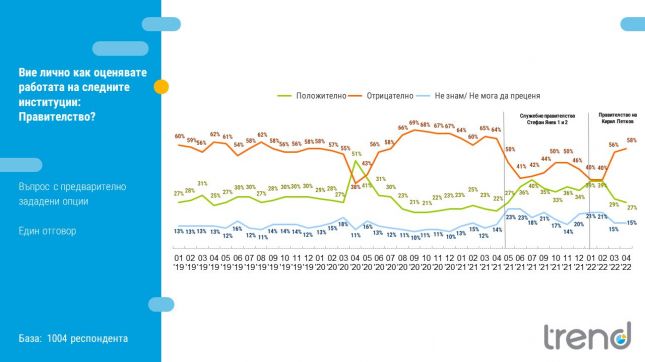 Това показва социологическо проучване на "Тренд", направено по поръчка на в. "24 часа" в периода 6 - 13 април 2022 г.