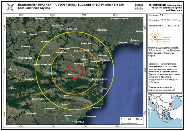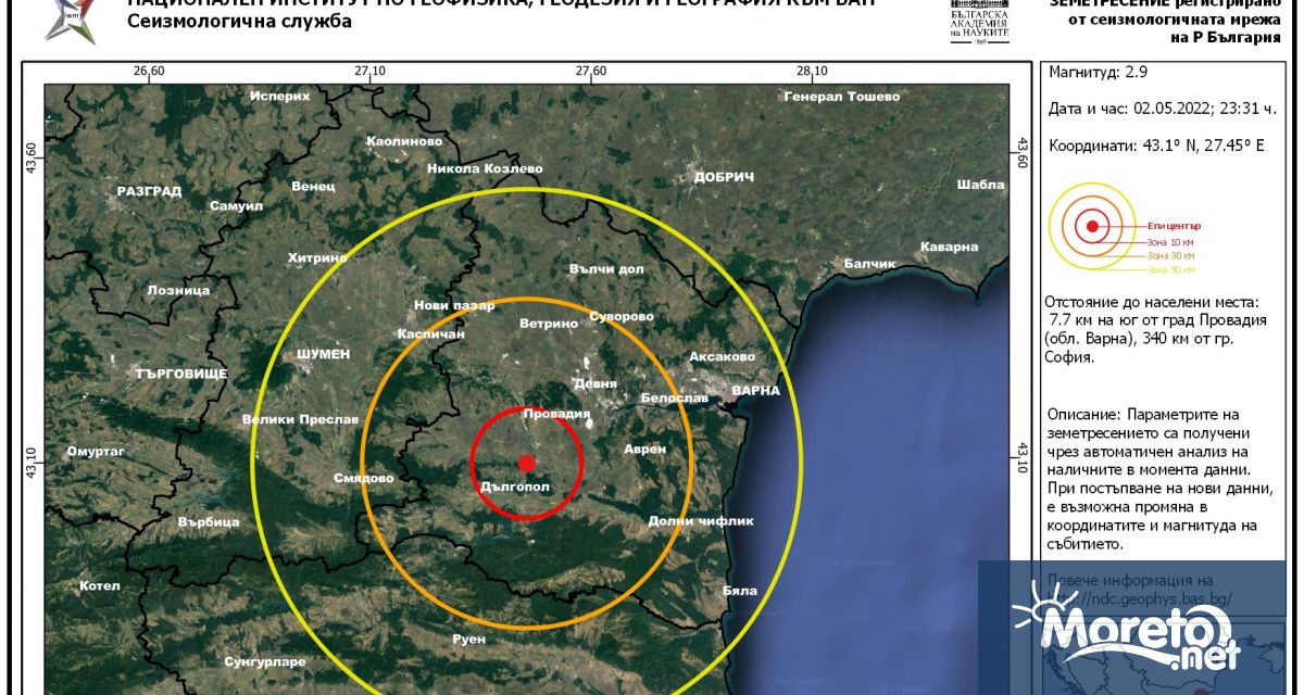Припомняме, че земетресение с магнитуд 3.3 бе регистрирано в района на Провадия в 18.19 ч. на 10 април. То бе усетено в околните населени места, както и във Варна.