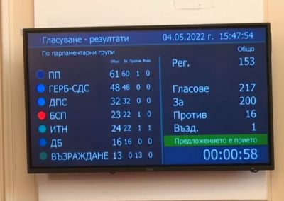 Същото се случи и с предложението на ПГ на "Демократична България", което дори бе прегласувано. От 200 участвали 79 бяха "за", 50 "против" и 71 "въздържали се".