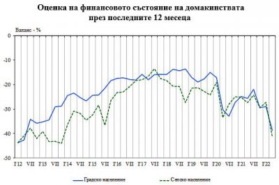 както и очакванията за следващите дванадесет месеца, са по-песимистични спрямо предходното наблюдение, в резултат на което балансовите показатели намаляват съответно с 11.8 и 15.0 пункта. По-негативни в сравнение с януари са и оценките и очакванията им относно промените във финансовото състояние на техните домакинства .